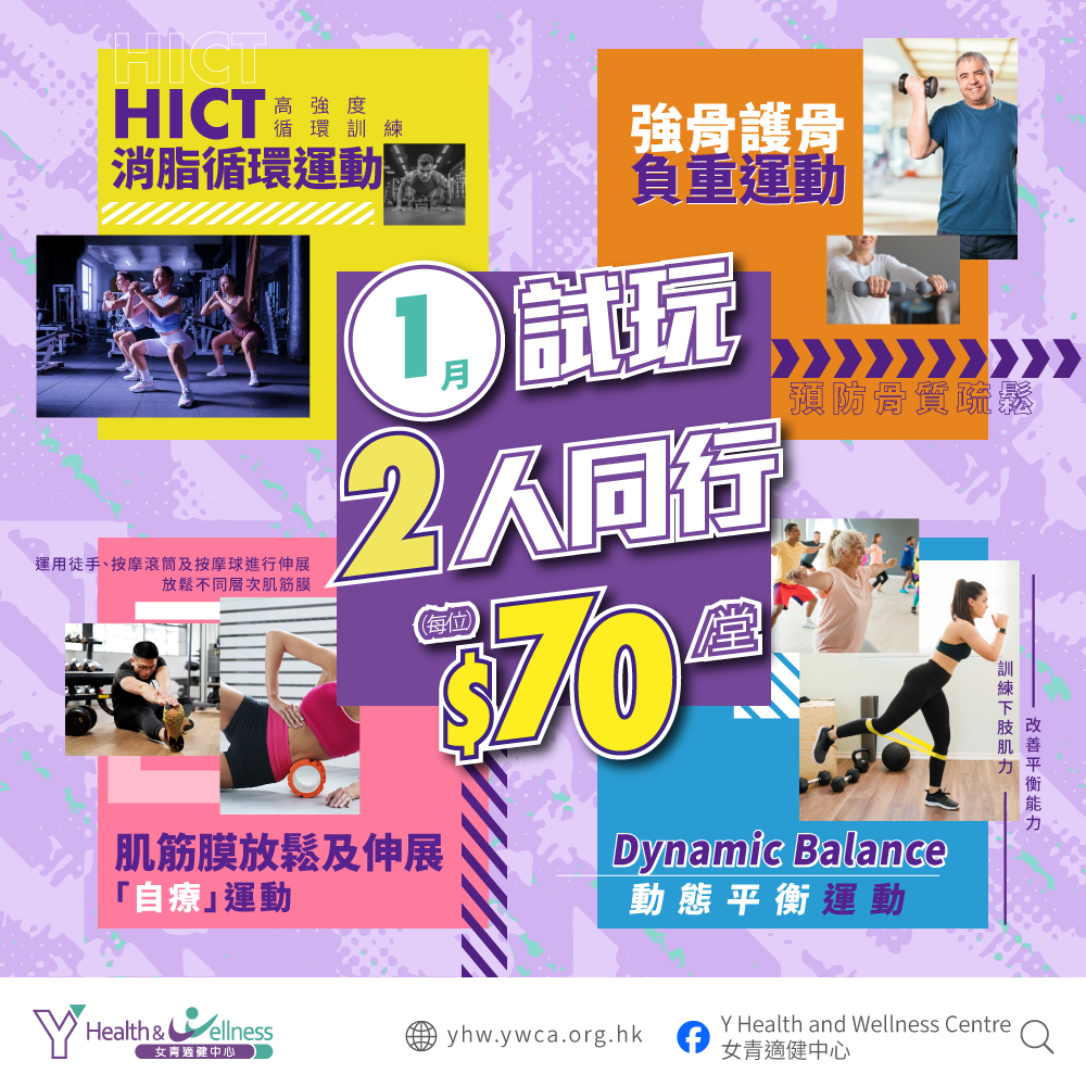 女青適健中心推出 **1月「新的開始」**優惠﹗ 二人同行低至每位$70/堂*﹗