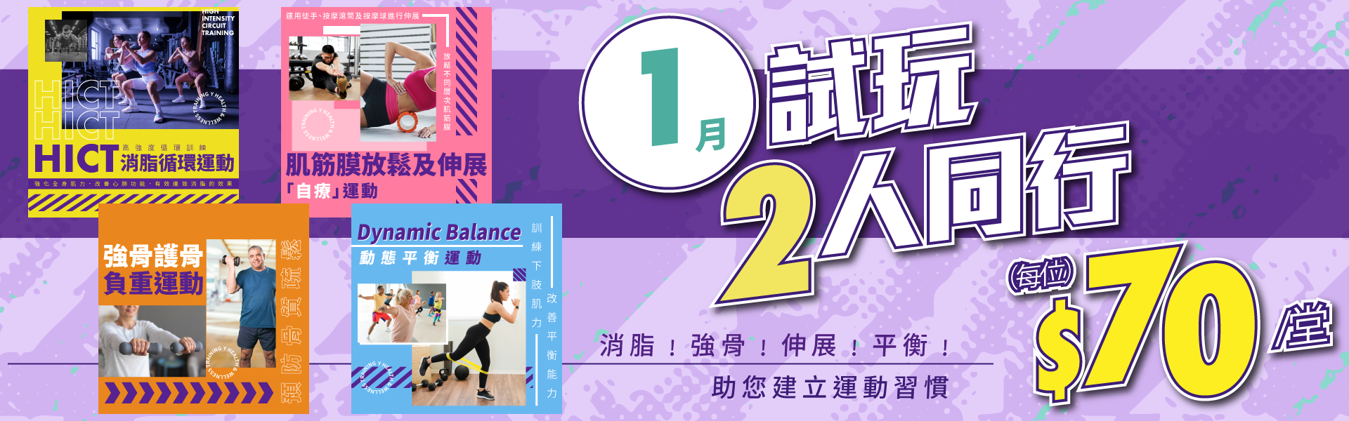二人同行試堂優惠﹕ 每位 $70/堂* (原價﹕ $125/堂)
