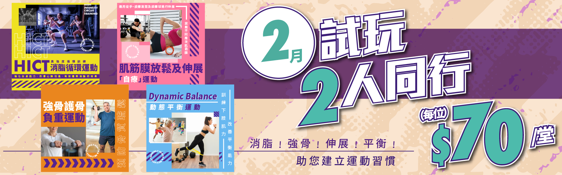二人同行試堂優惠﹕ 每位 $70/堂* (原價﹕ $125/堂)
