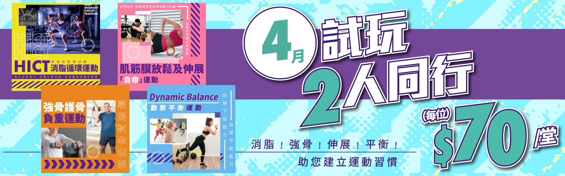 4大主題,無論你想增肌、減脂、紓緩繃緊肌肉 或 改善平衡力,總有一款適合你﹗